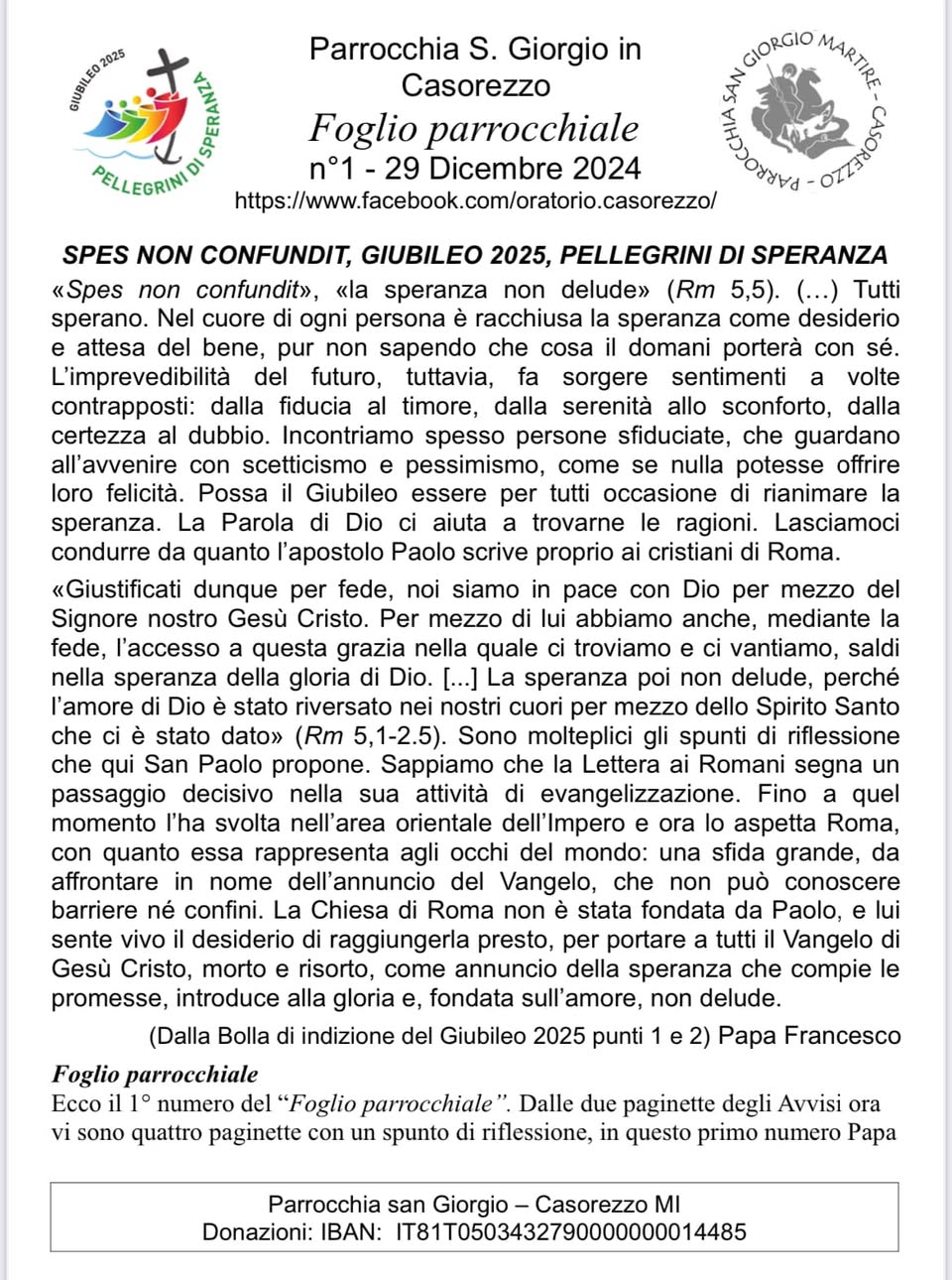 Foglio Parrocchiale