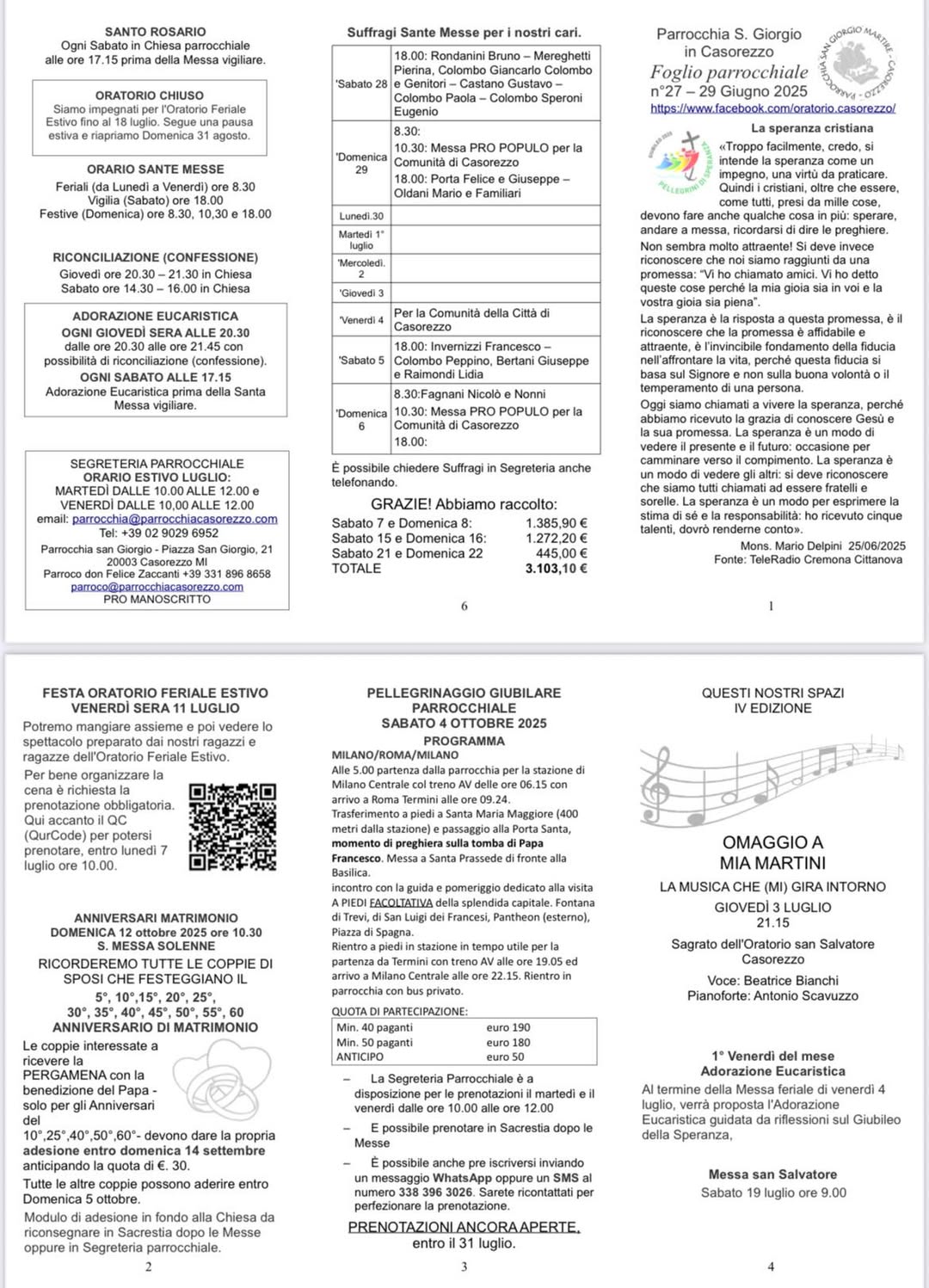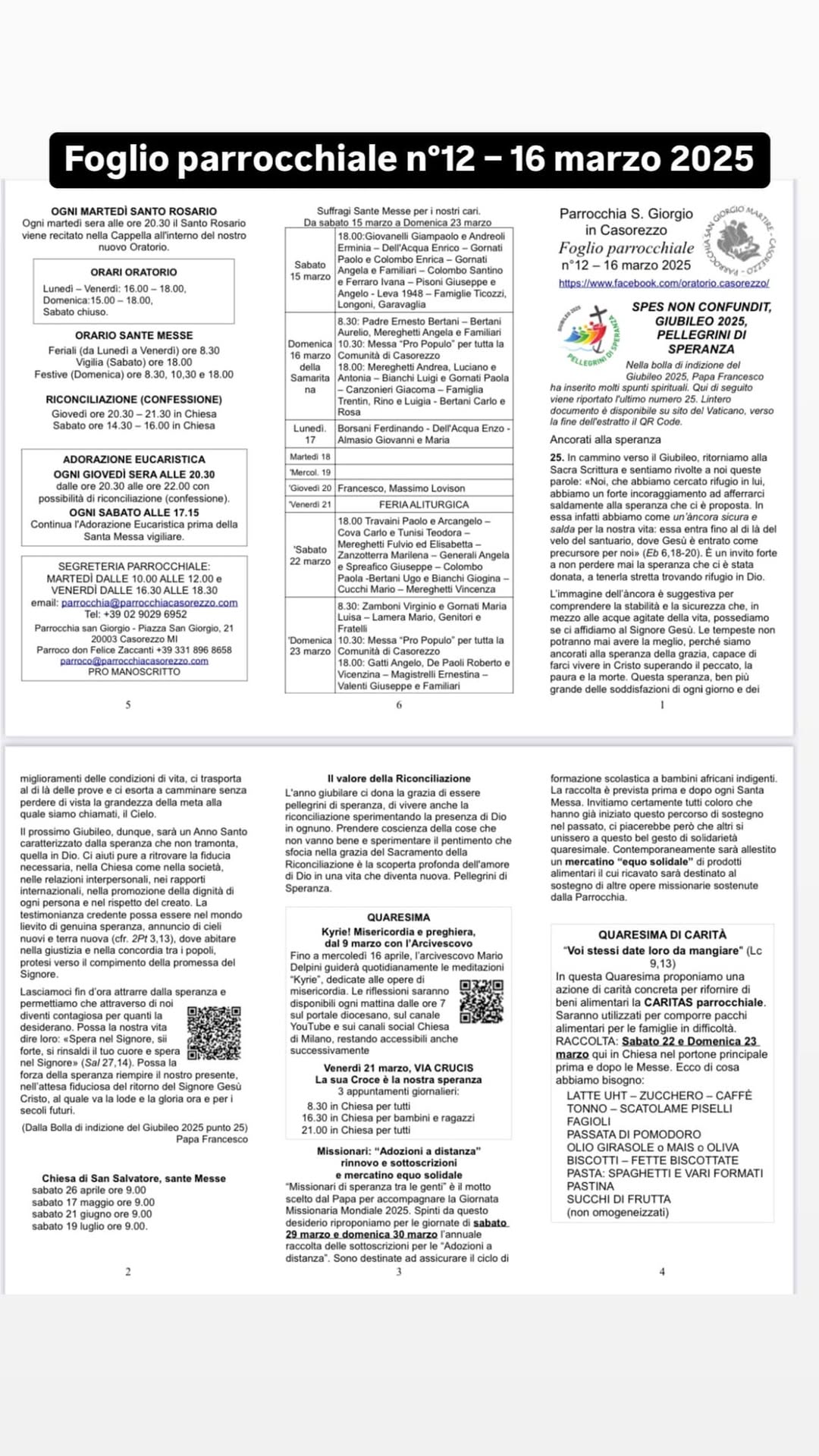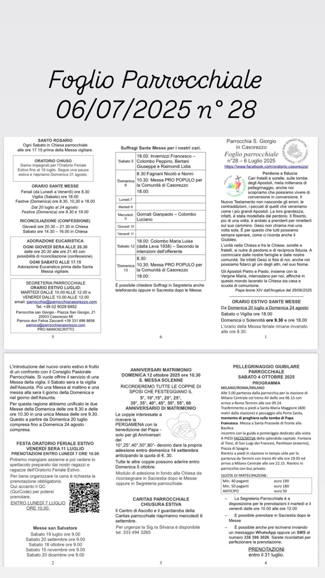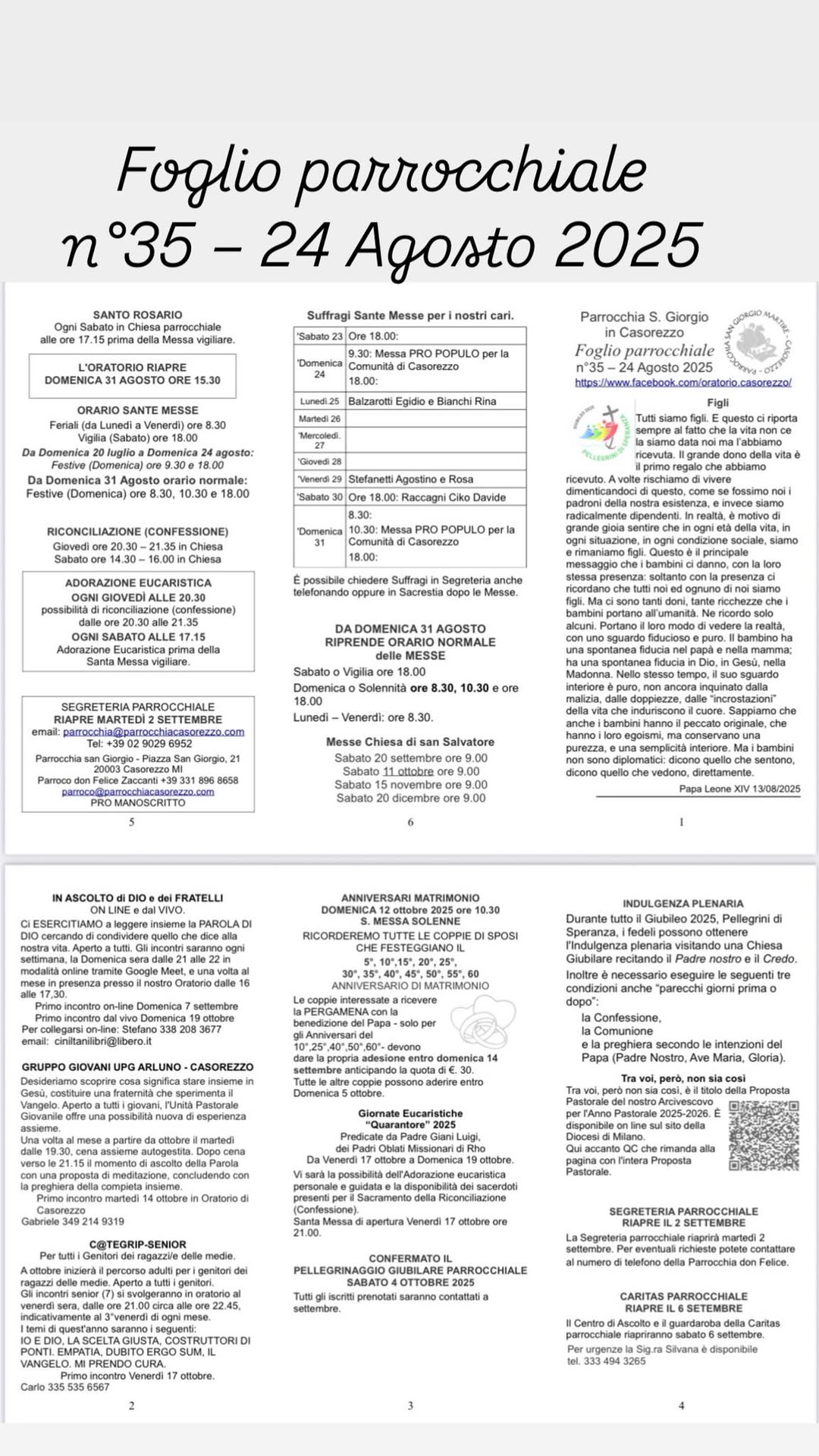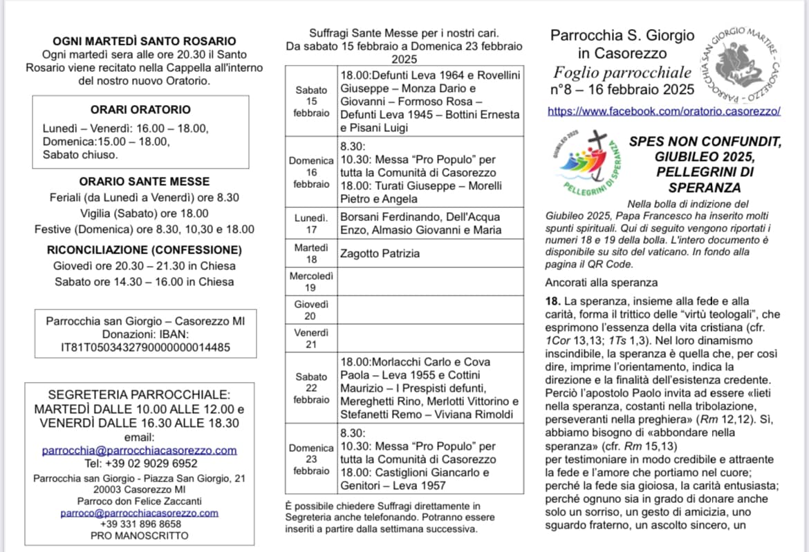 I fogli parrocchiali raccontano, settimana dopo settimana, la vita della nostra comunità: celebrazioni, momenti di fede, iniziative e riflessioni.